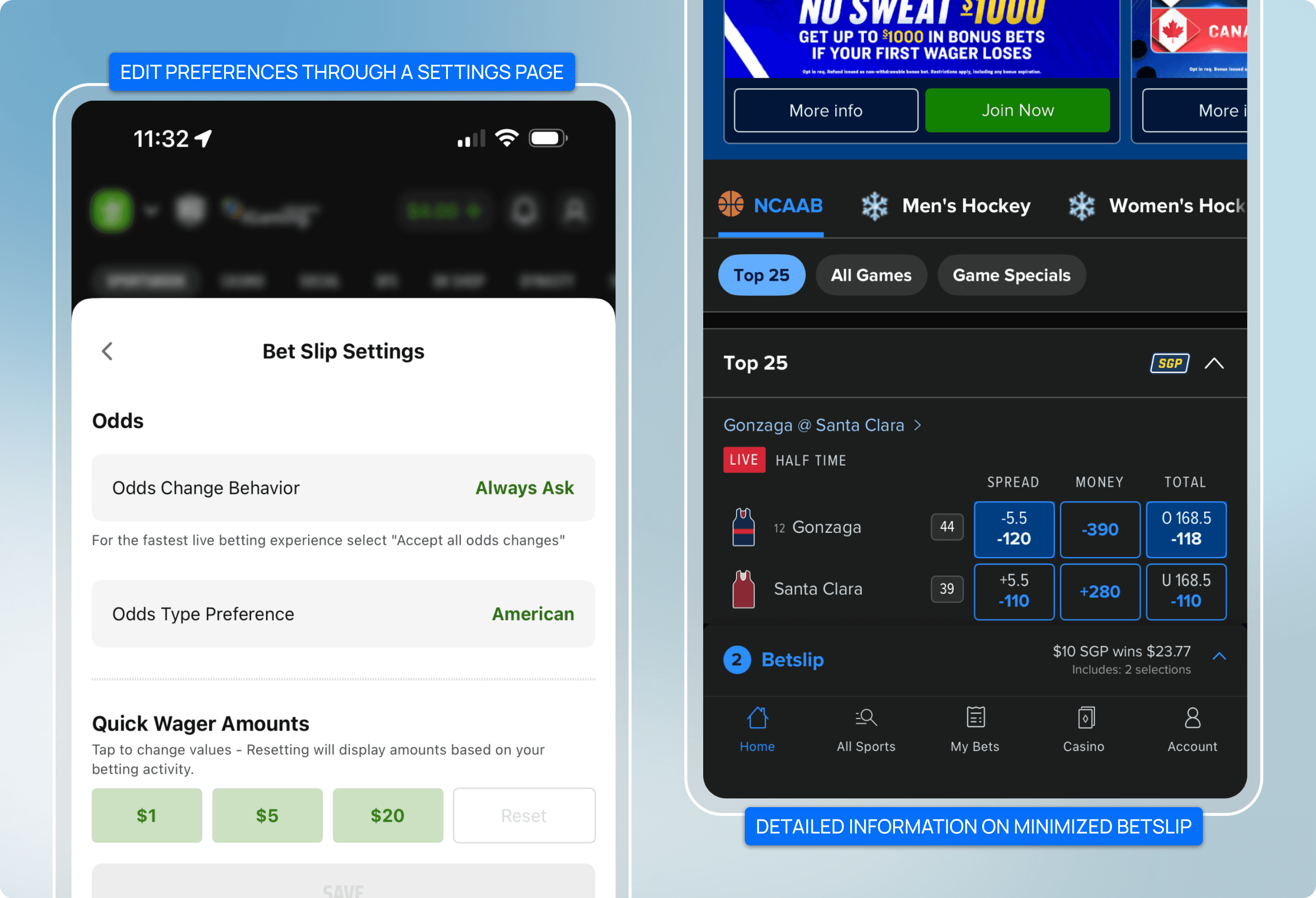 Introducing the minimized betslip and the betslip settings page where users can personalize their betslip while also having more information to make better and more educated bets.