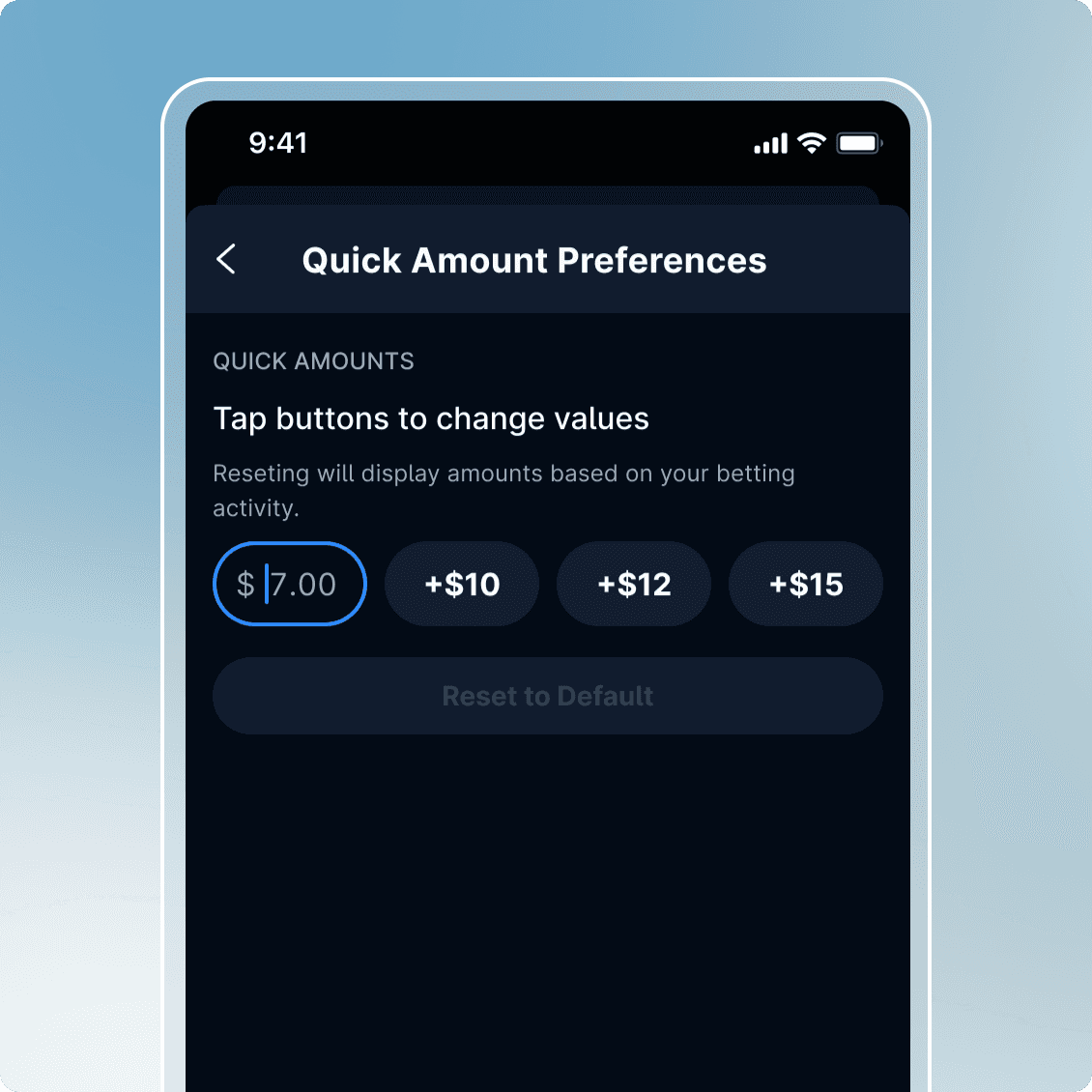 Quick Amounts Preferences allow users to change their quick amount values to set their bet amount instantly with the press of a button.
