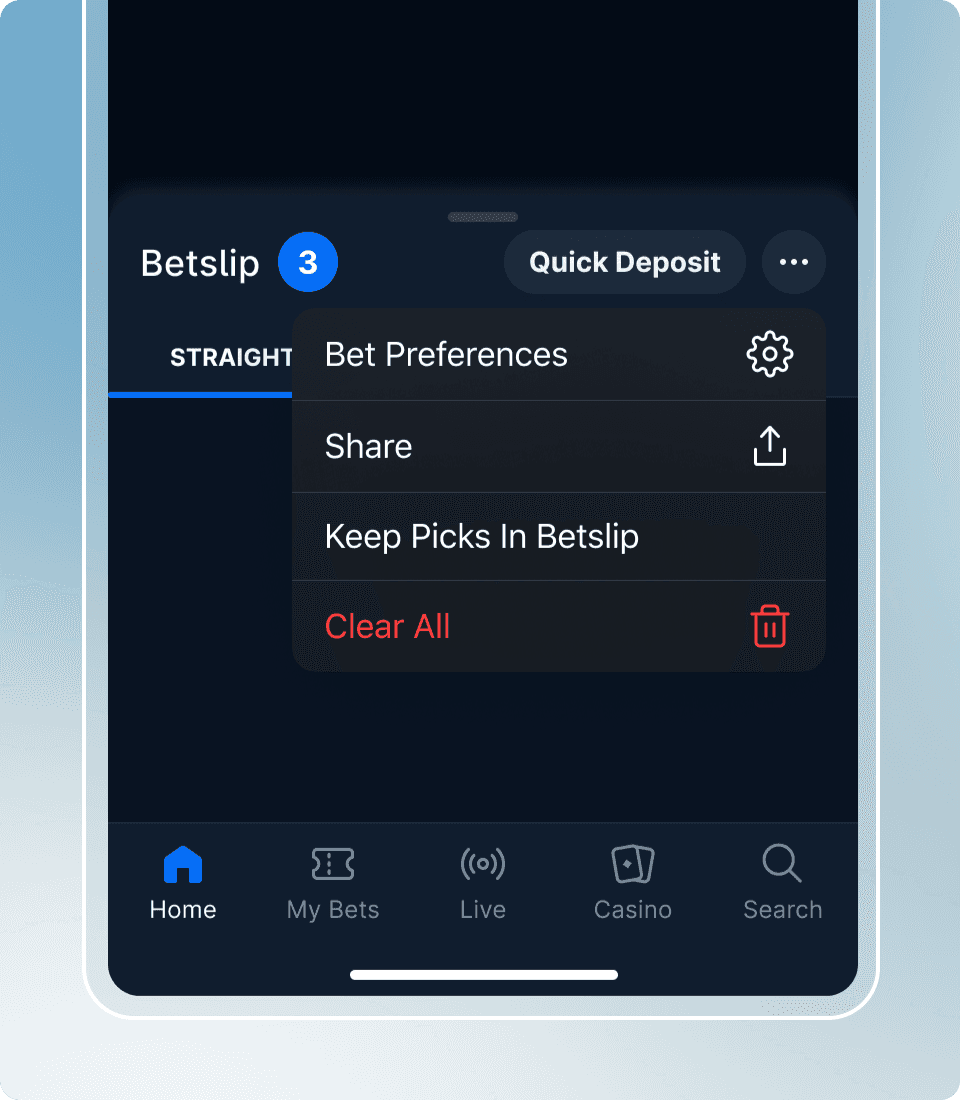 OPTION 1: BETSLIP SETTINGS / OVERFLOW MENU