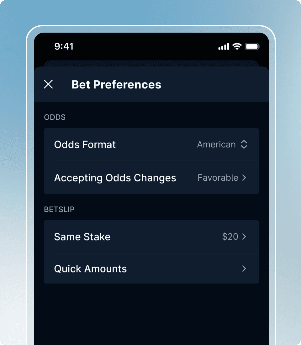 Open the new bet preferences page to change your odds behavior, quick amounts, and same stake amount.