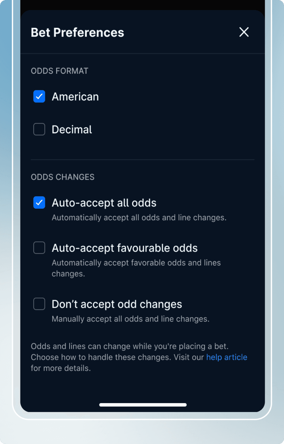 Patrons can change the way they accept odds to create a more seamless and quicker betting experience based on their risk tolerance.